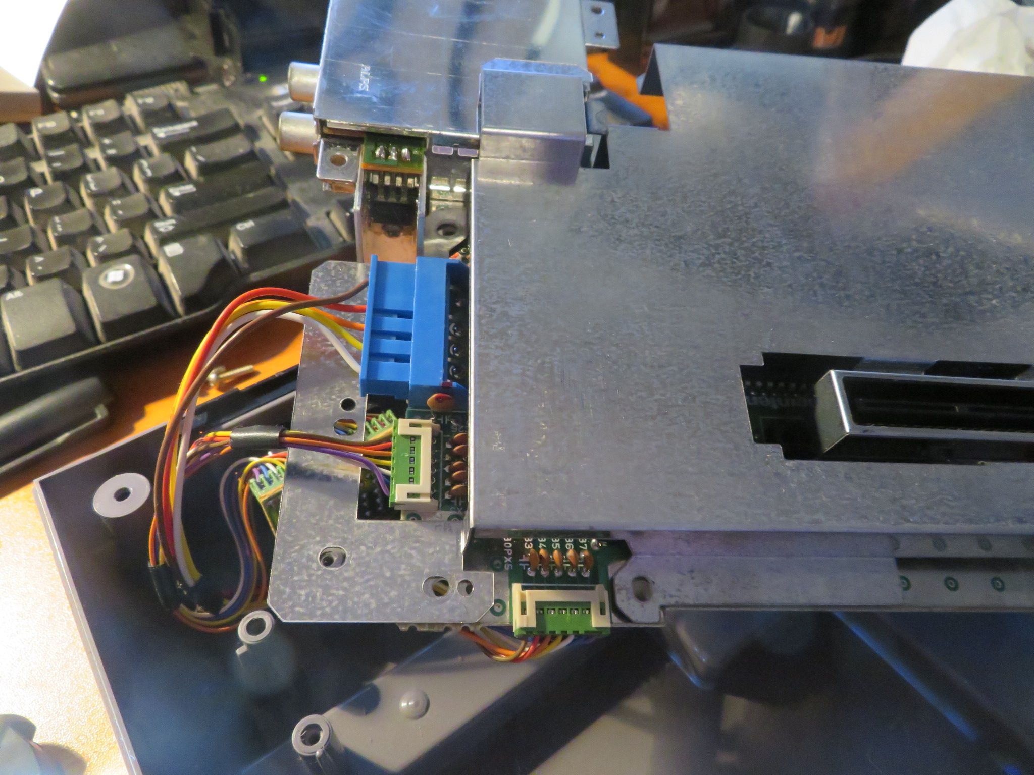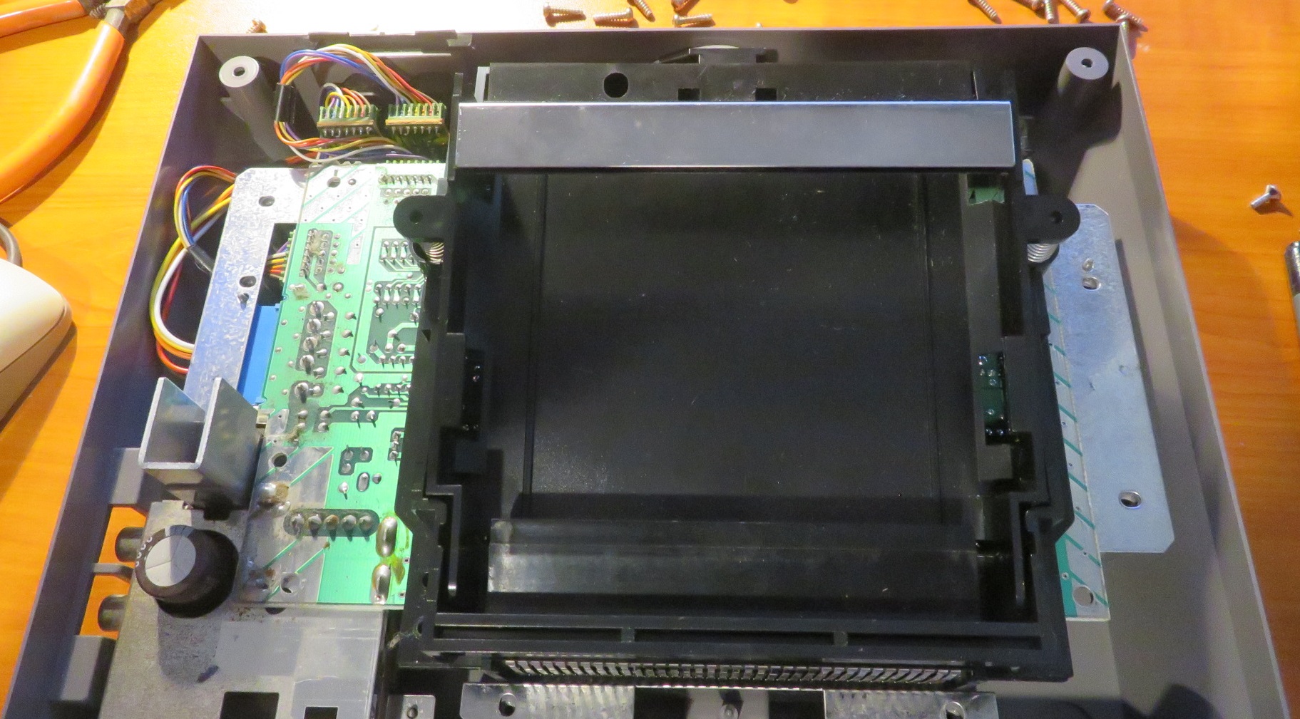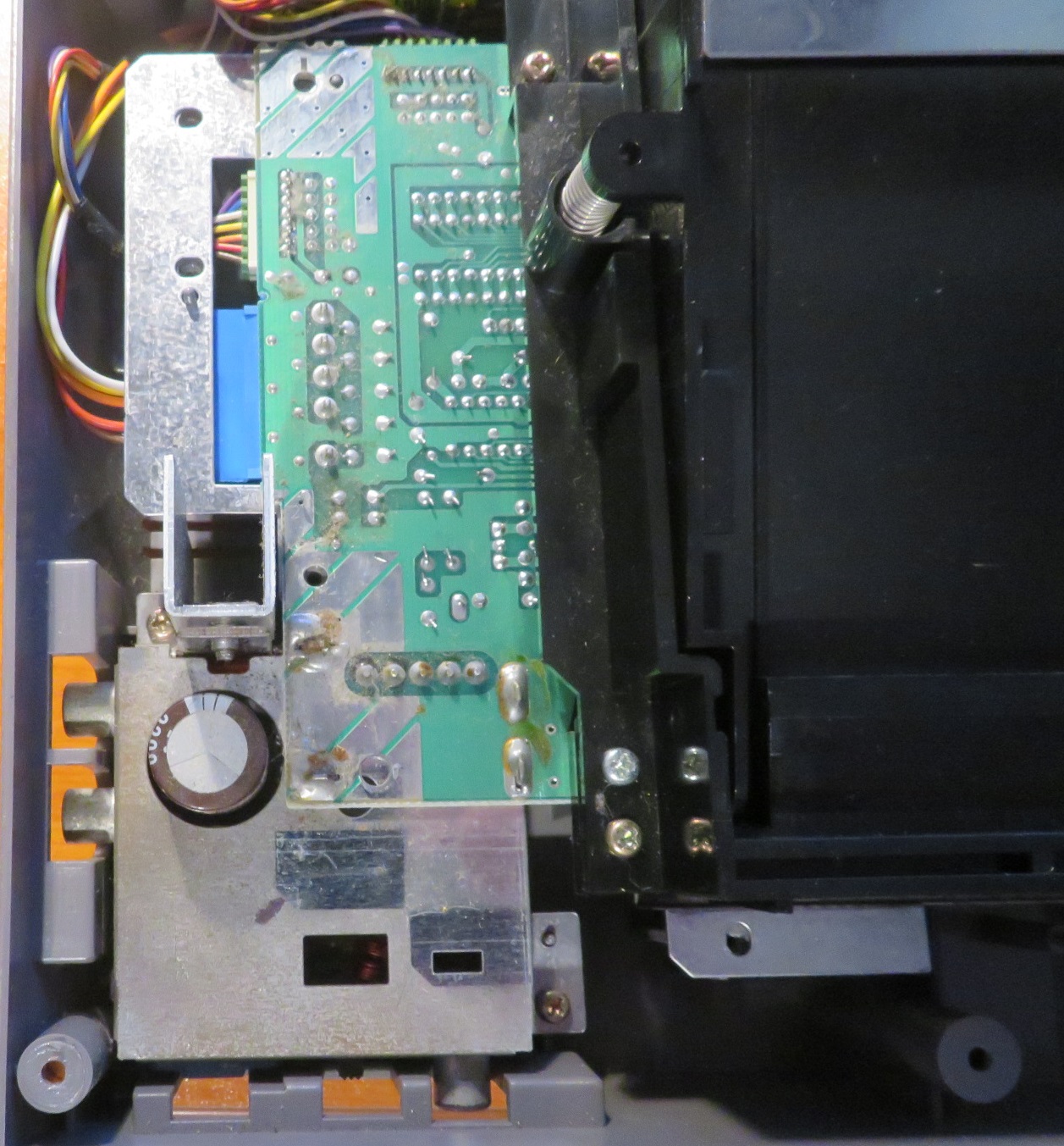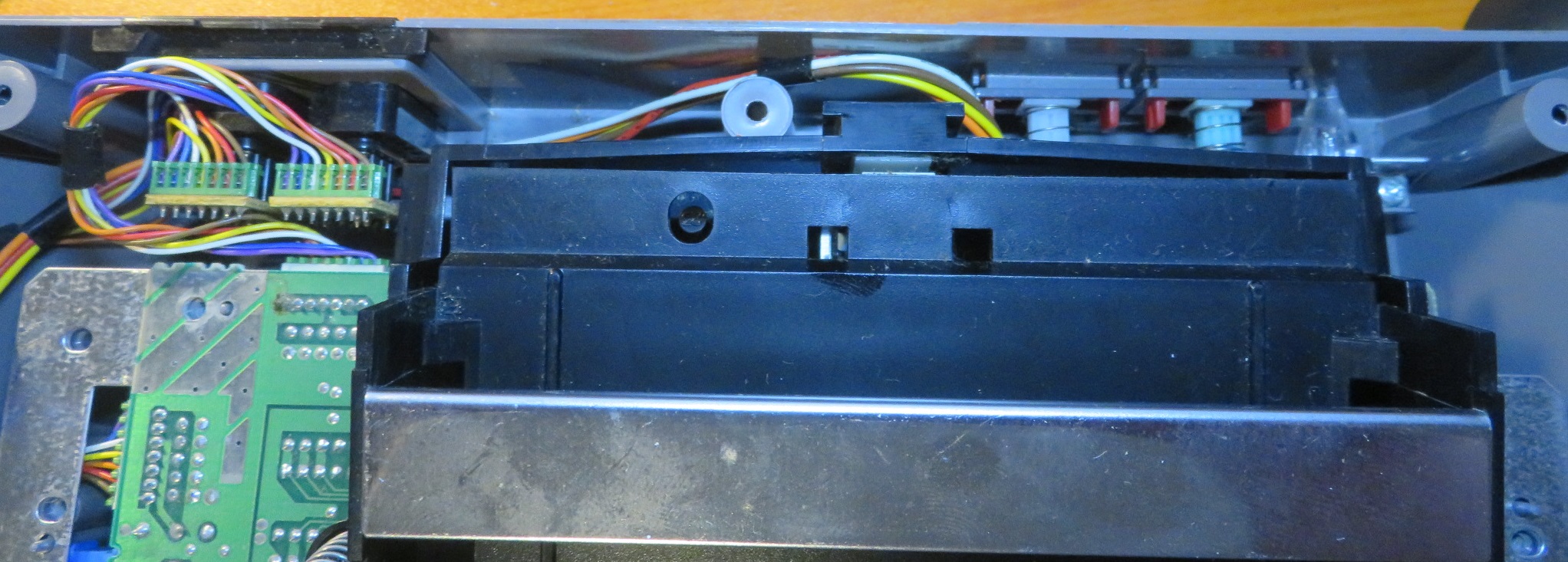 This is a good time to check the operation of the unit as it is functionally ready to accept power and check. Otherwise, we could be fully re-assembling and then find out still no improvement has been achieved. So prepare the unit to accept the power and positioned to accept a cartridge and turn on.