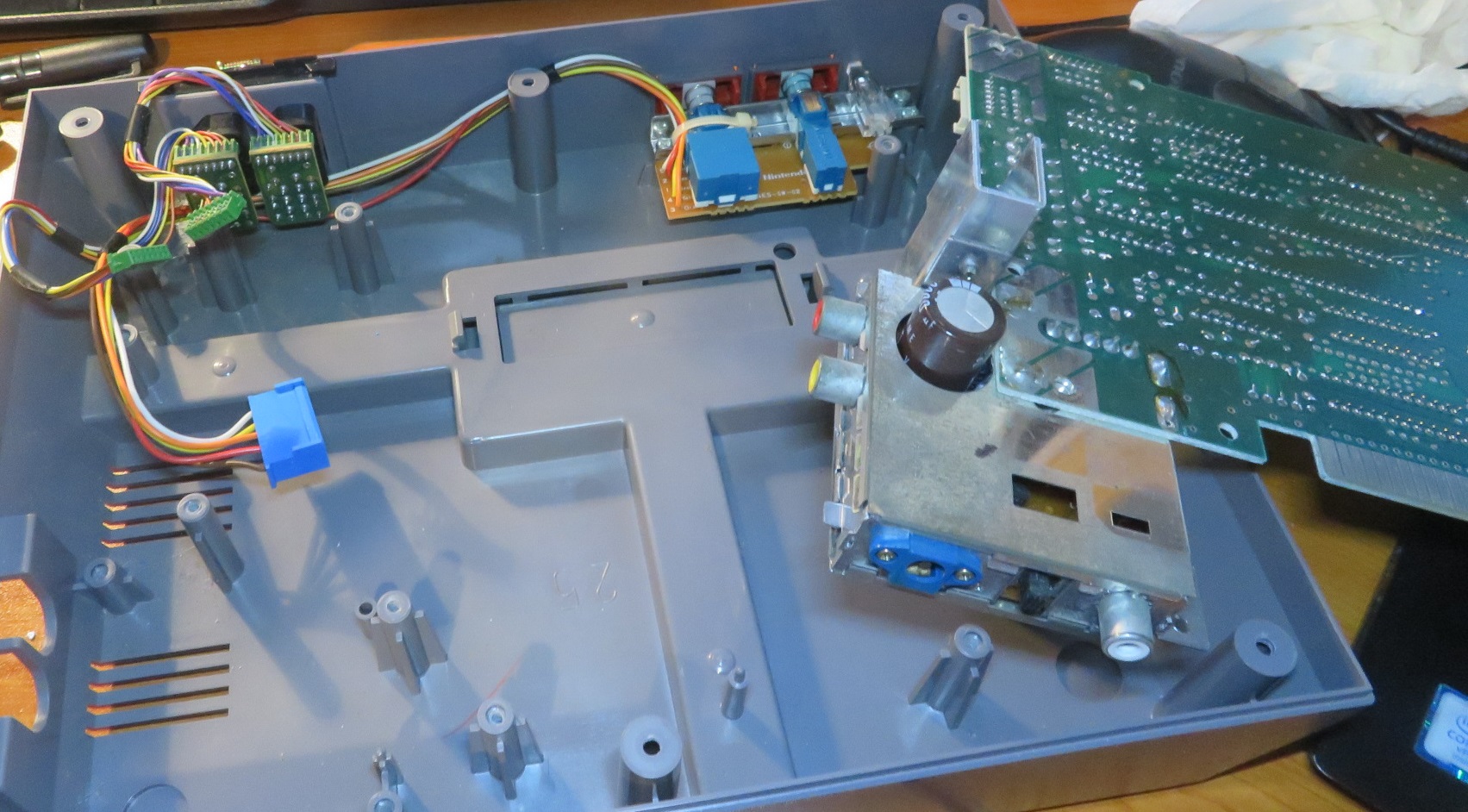 In this repair, there was no improvement at all. So I reseated the game cartridge a few times and after a 2nd attempt the NES booted to the game. The following were concluded: