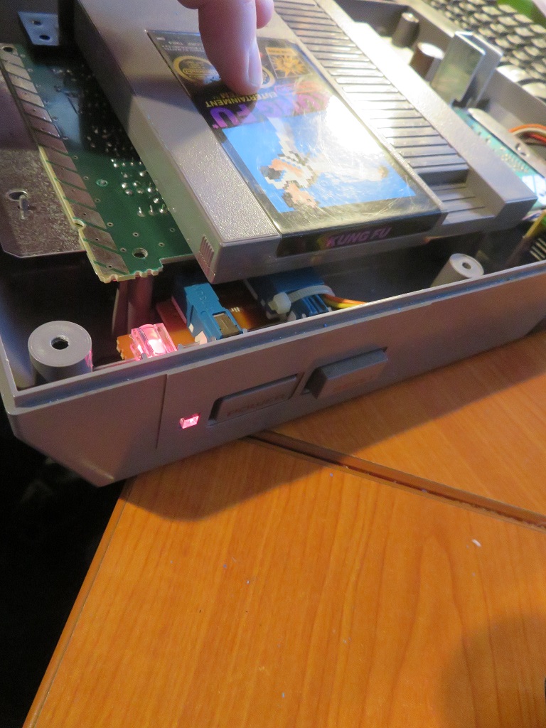 A check is done here again to see if the cartridge inserts without issues and the NES boots up a game.