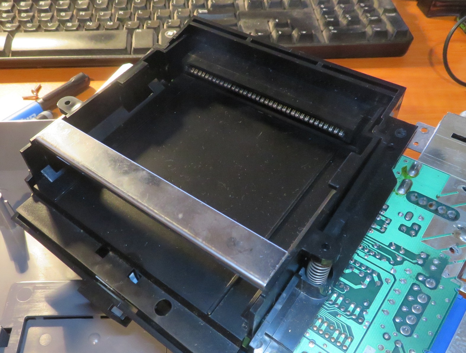 Next on the assembly is the caddy that holds the game cartridges.