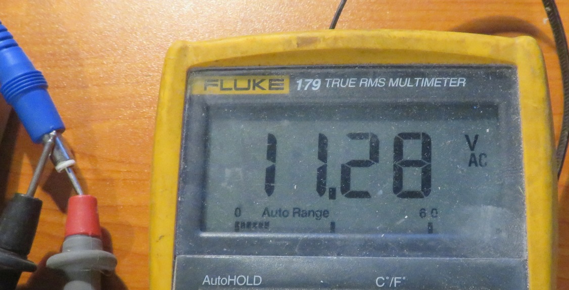 The NES Power Supply for a 240V system is rated for 240VAC input and 9VAC output. Typically a tolerance would be +5% and -10% so on this model, an output of 11.28V is on the high side but tolerable.