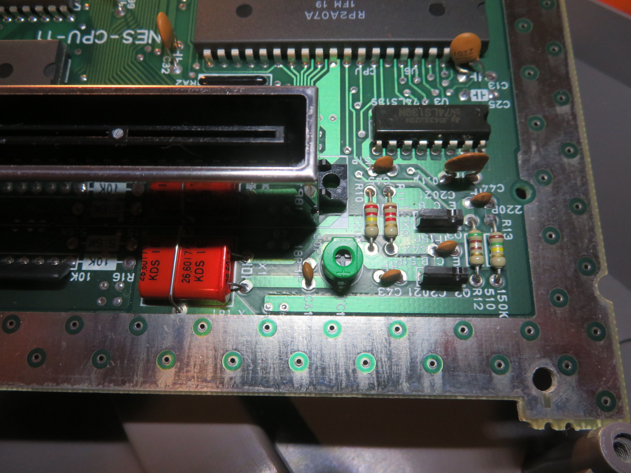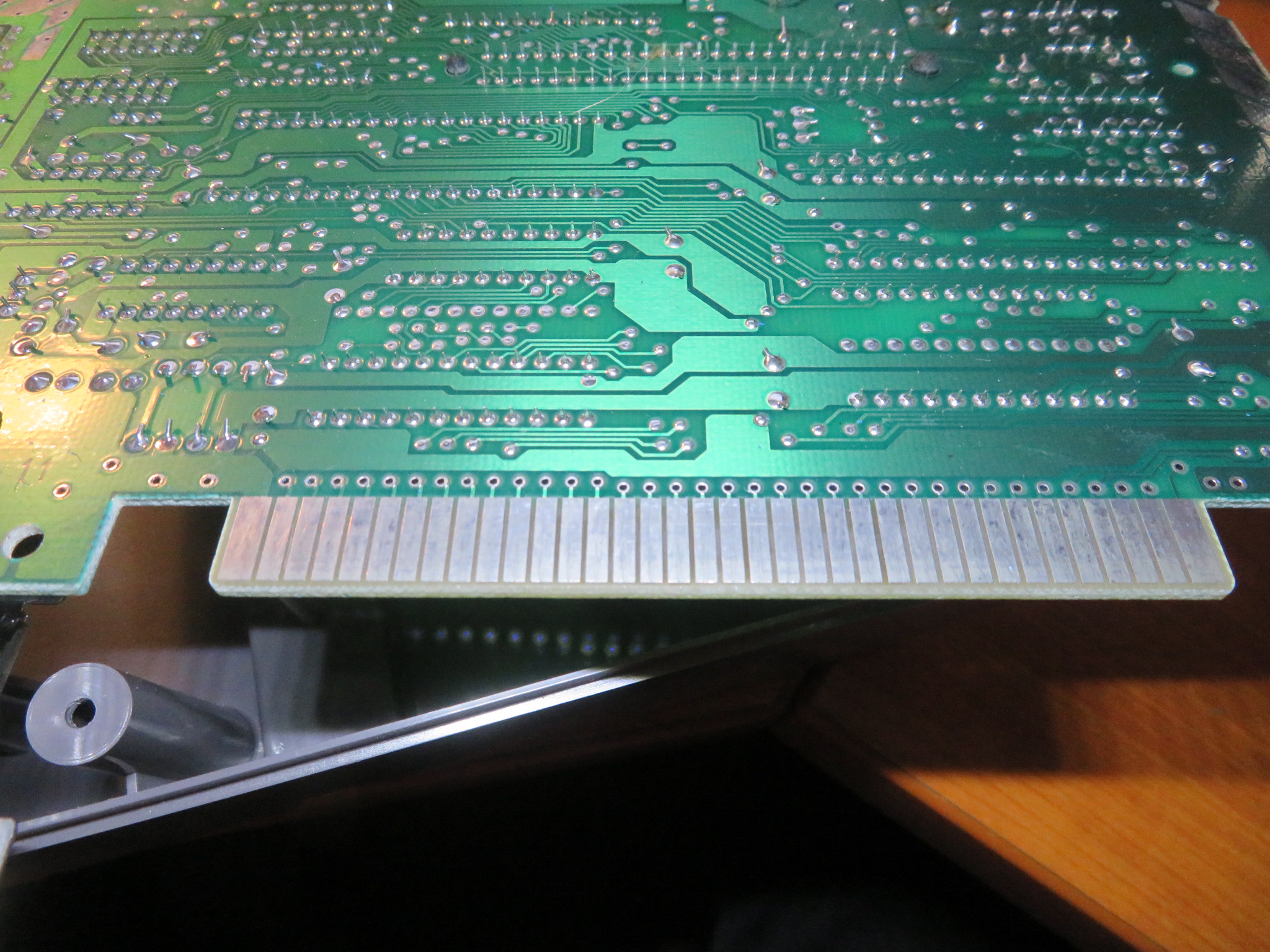 There an edge connector which connects the cartridge to the motherboard and can simply be removed by pulling off to reveal the PCB contacts. These looked in good condition but the contacts were cleaned with isopropyl alcohol and fine steel wool. Only a very quick and light rub was done as we don't want to lose much parent material although if it is degraded severely, then a simple re-tinning of the contacts with solder will help with this.